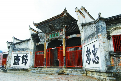 汝城古祠堂有710多座,可以说是村村有祠堂、族族有祠堂,而且建筑精美,文化气息浓厚。许多古祠堂的大门两侧或大堂上,都有“忠、孝、廉、节”四个醒目的大字,且都为大理学家朱熹手迹仿体。汝城古祠堂无不把理学的思想教化作为根本。在祠堂命名上也尽显理学精义,如“敦本堂”“叙伦堂”“五礼堂”“三省堂”“克复堂”“五经世第”等。一些古祠堂的堂联也尽显理学内涵,如马桥乡外沙村“太保第”联云:“考亭理学源流远,恭简勋猷德泽长。”其巧妙地把朱熹和朱英这两位理学大师、理学名臣连为一体。土桥镇周家村周氏宗祠联云:“国勋已见排诸吕,家学曾经授二程。”其把周敦颐倡立的理学尊奉为家学,还有什么比这个更亲切、更值得崇尚的呢?汝城古祠堂秉承理学教化宗旨,将“仁、义、礼、智、信”阐释教化得非常具体。