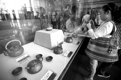 中国紫砂艺术始于明代正德年间,顾景舟远承明代的供春、时大彬,清代的陈鸣远、陈曼生。他所制之壶,形制古朴雅正、线条流畅温润,兼与书画艺术结合,有着浓郁的民族艺术特色。本报记者 卢 旭 摄影报道