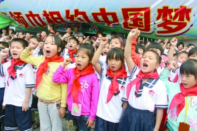 近日,湖南省隆回县桃洪镇东方红小学开展“红领巾相约中国梦”系列活动,包括演讲、征文、重温入队仪式等。图为东方红小学少先队员在重温入队仪式。罗理力 陆小君 摄