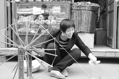 河北省省级非物质文化遗产代表性传承人陈爱国在现场展示威县土布传统纺织技艺。吕竑海 摄