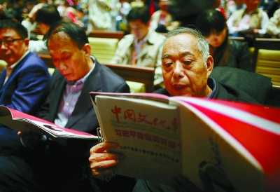 5.在演出现场,观众阅读《中国文化报》的“十艺节”会刊。