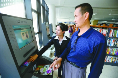 10.10月11日,济南市图书馆新馆首次对外开放,市民纷纷到图书馆借阅图书。本报记者 卢 旭 摄
