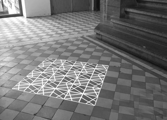 在比利时的一个艺术展上,艺术家帕伯路·瓦卜李内的作品《Time Tilings [stuk]》将视频投影和地砖设计结合,使极简主义感极强的砖块设计跃然地面,精致的几何图形将众人的目光吸引到了脚下。大家都在好奇这些精美的图形来自哪里,它们突然显现,又突然消失,令人入迷。