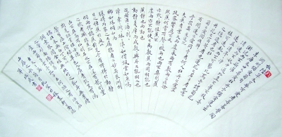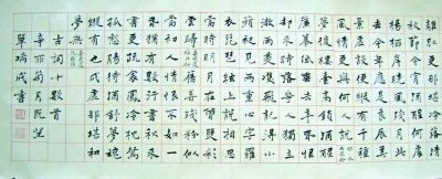面对他的笔墨,总觉得面对着一种温和与慰藉,这是写字人所企求的境界,我想,这就是人们所说的上乘书法,这书法的作者,就是一个出色的书法家。书法和书写两者之间,看上去同样是写,而好的书法作品,自有一份打动人的精神境界和艺术感染。书法和书写的区别,许多人并不理解,甚至写了一辈子也不明白,而有些人却领悟了,就有可能成为崭露头角的书法家。