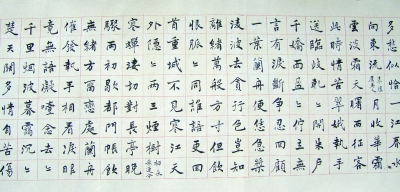 世界上所有的艺术,都来源于自然,只有书法例外,书法是这个世界上唯一出自人内心的艺术。不同的人将不同的理念和情操渗透进文字之中,就让这种孤静符号生出独特的有模有样的个性。我见过单瑞成几幅获奖作品,特别是小楷书法,一幅小楷《滕王阁序》,写得如锥划沙,提按顿挫,节奏鲜明,韵律起伏,密密麻麻一路写来,如宿世仙人,极具灵气,让人看了淋漓酣畅,其笔法的精微,构成他小字令人百看不厌的意境。还有一幅《朱伯庐家书》,和他的为人一样,和雅沉静,真气流衍,字里行间流露出王羲之《圣教序》的韵味,笔画如此纯熟,可见他对王羲之书法的研习,是下过苦功的;行草《无极》行笔遒劲,提顿锋毫,有跳宕伏越之势,提笔尤觉厚沉稳健,收笔干净利落。
