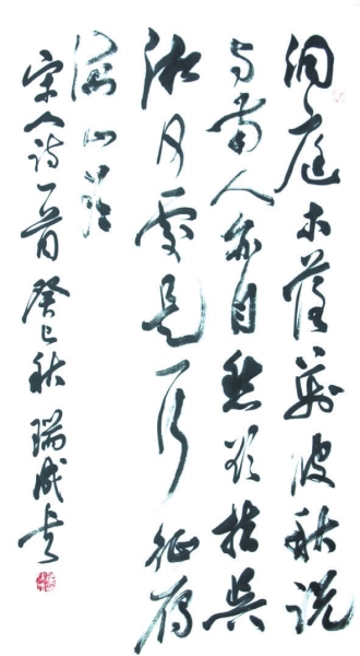 单瑞成,中国书法家协会会员、江苏省国画院特聘书法家、江苏省盐城市政协委员、东台市书法家协会副主席,曾被评为“德艺双馨书法家”。作品入选全国第八届书法展、全国千名书家精品走进奥运场馆展、第二届正书大展、纪念邓小平诞辰100周年全国大型书法展、当代江苏书法精品晋京展、建国50周年江苏书法展、江苏首届美术节书法展等省及全国多次重大展出,并获中国书法家协会书法培训中心成立10周年成果展一等奖、首届林散之奖、南京书法传媒三年展佳作奖、全国群星奖、江苏省五星工程奖。作品多次在专业报刊介绍发表,多次在中国美术馆展出,并被国家游泳中心(水立方)和多家博物馆、纪念馆以及很多海内外人士永久收藏。电视专题片《单瑞成笔墨人生》在江苏卫视、凤凰卫视等台播出。(注:单瑞成书法由中国书法家协会副主席,江苏省文联副主席、书记处书记言恭达题写。)
