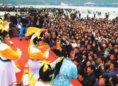 大海的无情,让渔民们需要在精神上寻找支柱,由此便形成了广泛存在、根深蒂固的渔家信俗。比如每次出海之前,渔民都要在船上拜船龙、做船福,以祈求出海平安,鱼丰满仓。有些仪式经过几百上千年的演变,逐渐形成了渔区盛大的民俗节日,如祭祀妈祖祈求丰收的渔民开洋、谢洋节,祭悼抗倭牺牲将士的昌国两头会,纪念十八先贤围海造田的大塘红庙庙会,还有石浦十四夜、三月三踏沙滩、七月半放水灯,都体现了渔家对大海的感恩和对美好生活的追求。