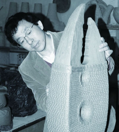 需强调的是,陶艺的发展决不能跟在西方后面,一定要把中国传统元素、传统文化融进去,所以我做的陶艺作品都有中国特色,用传统的盘条和印坯的方式成型,装饰大家喜闻乐见的鱼型等。