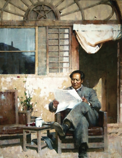 我不是画家,更不是评论家。以上所说,只是我读谷钢先生作品所产生的一些感受。画作中的毛泽东,是党和人民的领袖,但他又如普通百姓一样怀念故乡,怀念自己的爱侣;他充满人情,但他的梦想寥廓,理想伟大,他希望中华大地处处洒满金光!人民领袖伟大崇高,但又平易近人,他永远活在人民的心中,万古长青!