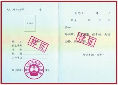 学习期满,经考试合格者,颁发中华人民共和国文化部《岗位培训合格证书》 (见附件),加盖培训单位文化部文化艺术人才中心印章和钢印。该证书是人事组织部门用人参考的重要凭证。证书编号可登录中国文化人才网http://www.ccatmc.com.cn/查询。