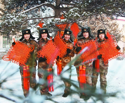 元旦前夕,沈阳军区某装甲旅官兵运用中国结、彩旗、剪纸等,将军营装扮得喜气洋洋,迎接新年的到来。翁伟立 摄影报道