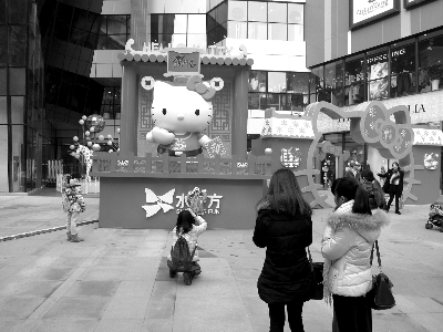 据了解,此次“水平方Hello Kitty恭贺新春展”分布在整个商场,1至3层都有不同主题的场景展示,为期两个月,是Hello Kitty在全球范围内首次以传统春节的形象出现。除静态展示外,还有Hello Kitty演出,包括舞蹈、拍照等互动游戏。(张德华 摄)