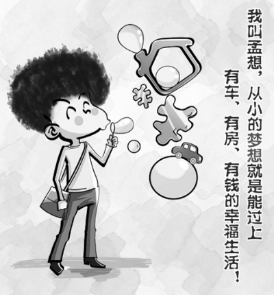 《孟想的幸福》提出一个思考:用物质去衡量幸福是一个伪命题吗?作品开篇以淡水彩绘本的风格展开了主人公孟想的内心世界,故事情节设置紧凑合理,一个人根深蒂固的价值观通过不同事件的影响渐渐发生改变,情节节点的选择和设计使故事一步步走向高潮,加之老父亲生病的虚幻表现手法,主线与辅线搭配,两线并行推动情节发展。幽默的图画、明确的主题和夸张的造型,使这部作品十分适合在手机上观看,单张作品虽只寥寥数语,却蕴含了哲理,最后的“每个人身后都有一个门,门后有一个守护你的人,就是幸福”的表达,是不是也让忙碌的你想到了什么?