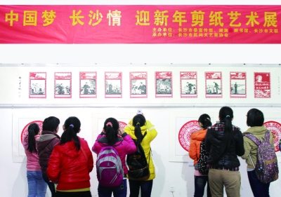 由长沙市委宣传部、湖南图书馆、长沙市文联主办,长沙市民间文艺家协会承办的“中国梦·长沙情”迎新年剪纸艺术展于1月5日至17日在湖南图书馆举行。参展的100余幅精巧的剪纸作品全部来自长沙市民间文艺家协会会员的巧手创作。田立宪 摄