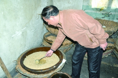 走进刘谋彩酒厂的酒库,扑面而来的就是浓郁的酒香。这里的湖之酒有3种:一是原生态的湖之酒,包含了酒糟和酒液,很多人喜欢喝这个酒;一是压榨分离后的湖之酒,倒入酒缸,密封保存,进入熟化期,糖分慢慢转化成酒精,酒度逐渐提高,香味浓郁,回味无穷;一是装入酒坛中的密封陈酿,一年以后变成陈酿湖之酒,不用加任何防腐剂,可长期贮存。陈酿时间越久,酒质越美。这与绍兴黄酒非常近似。