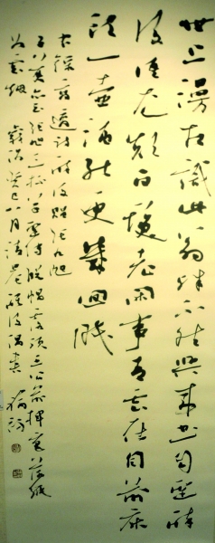 这些作品,给我的印象,既传统又有现代气息;既有精到的笔墨功夫,又有探索创新;既是对过去的总结回顾,更是对未来的期许与展望。尤为可喜的是,有一些作品让我从那昂扬的精神风貌中,体味到了躁动后的宁静,方寸间的达观,以及流淌于笔墨间的激情与豪迈。这次展览,无疑是娄底书法整体水平的一次集中展示,同时也给全国各地书坛提供了一个极好的参照。