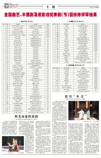 全国曲艺、木偶剧及皮影戏优秀剧(节)目扶持评审结果