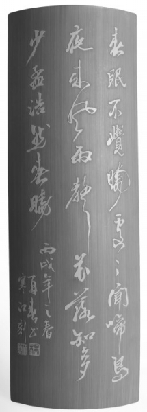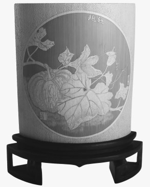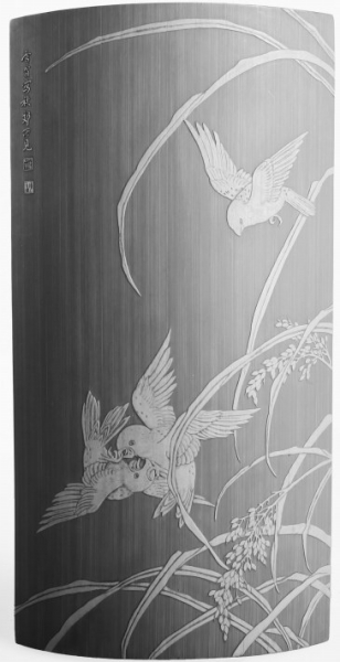 她淡淡地说:“从1994年11月至今,快20年时间了。”“不容易啊,是什么让你坚持这么长时间?”我觉得一个人一直坚持着做一件事这么多年真的需要勇气和毅力。“这近20年的从艺道路上,遇到的困难一言难尽!坚持,应该说是热爱竹刻艺术吧。因为从骨子里喜欢竹子、欣赏竹子……”于是,有了一次长聊的开始。从她的叙述中,我心里由衷为她感到高兴,因为从她淡淡的言语中可以深深感到她现在内心的一份充实、淡定与自在,也深深感受到功力不唐捐的道理——那份自信来自于她的文质双修!
