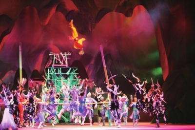 大型杂技剧《西游记》根据我国古典文学名著《西游记》改编,由广州杂技团联合京、沪、穗三地艺术名