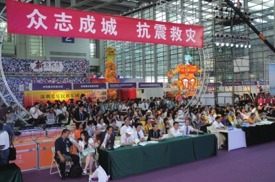 第四届深圳文博会开幕前夕,四川汶川等地遭遇特大地震灾害。组委会研究决定,第四届文博会一切从简,内宾宴会一律取消,节省款项捐助灾区。5月16日上午的开幕式现场,参加开幕式的刘云山、汪洋、孙家正等党和国家领导人带头捐款,各界人士纷纷慷慨解囊。围绕“文博会与灾区人民心连心”的主题,第四届文博会在会展中心的主会场各大展馆和24家分会场同时开展了为地震灾区举行现场募捐活动,同时举办文博会艺术品募捐拍卖会、赈灾晚会等赈灾义卖、义演活动。据不完全统计,文博会期间共为四川汶川地震灾区募集善款5488.82万元人民币,其中主会场522.26万元,24个分会场共4966.56万元。