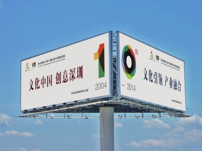 纪念LOGO,并且针对不同户外媒体,采取了不同设计效果。比如,户外立柱突出简洁、热烈、大气的特色,以让外地参展团与嘉宾在机场、火车站、地铁、市区公交候车亭感受到深圳的热情。