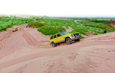 当看到清一色的沙漠越野车在玉龙沙湖进行表演时,记者早已激动地想钻进车里亲自体验。在接受过专业训练的司机师傅的提醒下,记者系好安全带,抓好扶手,还未回过神来,越野车便已在沙漠里奔驰,忽而侧翻﹑忽而俯冲﹑忽而转弯﹑忽而急刹,乘客的尖叫声随之此起彼伏。听着发动机的轰鸣,看着满天飞卷的沙粒,游客们充分感受着在草原沙海中的别样体验。