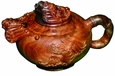 此次海南国盛参展的海南黄花梨工艺品琳琅满目,如《龙壶》、《金鱼壶》、《福壶》、十八罗汉大型系列根雕等,这些难得一见的海黄艺术珍品甫一亮相就吸引了众多人气。