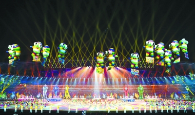 “时间在追赶未来,脚步跟随梦想加快。”在《点亮未来》的歌声中,舞台上数百名青年载歌载舞,“砳砳”造型气球腾空升起,5个“青春巨人”款款而来,青春梦、中国梦、世界梦交织出绚丽多彩的梦想之光。这是一个难忘的狂欢之夜,全世界将铭记中国的笑脸;这是一个令人心醉的燃烧之夜,青春在这里续写,永不落幕。(新华社南京8月28日电)