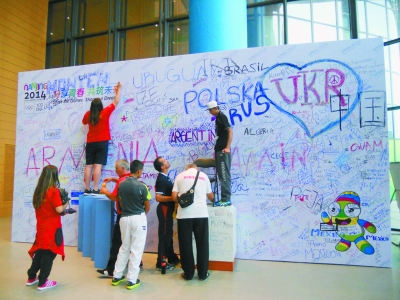青奥村的欢迎墙。