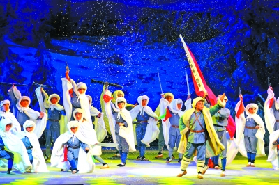 ▶ 为纪念中国人民抗日战争暨世界反法西斯战争胜利69周年和抗日英雄杨靖宇诞辰109周年,由吉林省委宣传部、省文化厅重点扶持,吉林省戏曲剧院京剧团打造的大型原创现代京剧《杨靖宇》,9月2日在长春东方大剧院上演。全剧塑造了杨靖宇“十年铁血百战身,精忠报国铸英魂”的光辉形象。图为演出剧照。 王星晶 摄
