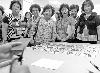 近日,参加“第四届沪台妇女文化周”的台湾台中妇女代表团代表与上海徐汇区枫林街道的居民一起学习剪纸艺术。“第四届沪台妇女文化周”以“传承中华文化 赞颂家庭美德”为主题,参加者深入上海的社区乡里家庭互动交流。图为来自台中的妇女代表在观看剪纸艺术家的现场表演。新华社记者 刘 颖 摄