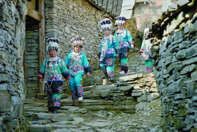 悠然行走于青山绿水间的苗寨,手抚悠远深邃的石墙,脚踏古老厚重的石板,穿梭于坐落别致的石屋楼群,品尝着馥郁醇香的苗家苞谷烧酒,一股在都市难以感觉到的淳朴亲切感立时将你包裹得严严实实,仿佛有人将你骤然抛往那遥远的时间隧道,走进了古老的诗意梦境。
