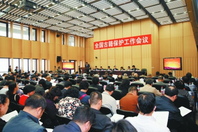 10月11日,全国古籍保护工作会议在北京中国国家图书馆召开。文化部副部长杨志今出席会议并作重要讲话。教育部副部长、国家语言文字工作委员会主任李卫红参加会议并讲话。国家民委副主任丹珠昂奔,国家宗教事务局副局长蒋坚永,国家中医药管理局副局长王志勇,文化部人事司司长张雅芳,国家图书馆馆长、国家古籍保护中心主任韩永进等出席会议。会议由文化部公共文化司司长张永新主持。来自全国古籍保护工作部际联席会议成员单位代表,各省、自治区、直辖市文化厅(局)长、社文处处长,副省级以上公共图书馆馆长和古籍保护专家代表等近200人参加会议。