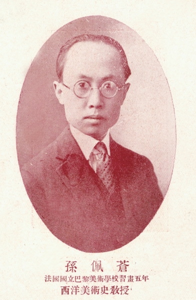孙佩苍,又名孙沛苍,别号雨珊、禹珊,籍贯辽宁沈阳。北洋师范优级博物科毕业,1920年11月7日,以教育视学身份留学法国,在巴黎市郊郭伯郎学校学习法语和绘画后,考入巴黎国立美术专科学校绘画科。学习期间,曾先后游历意、英、德、俄、荷兰、西班牙等十国,考察近百处美术馆,研习美术史。与徐悲鸿等人结为好友,成立“天狗会”,《蒋碧薇回忆录》中写道:“会友们公推谢寿康为老大,徐悲鸿先生为老二,张道藩先生为老三,邵洵美先生为老四,军师是孙佩苍先生……”而徐悲鸿之子徐庆平说起他们的交往,“同在巴黎研习绘画。他们均对艺术爱入骨髓,虽为穷苦学生,常常学费不继,却节衣缩食地购买艺术品和画册,观赏歌剧,在文化精神的富足上可比王公。”