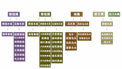 紫檀木俗称“小叶紫檀”,是豆科紫檀属中特别硬重的一类树种统称,是红木中较高级的用材。