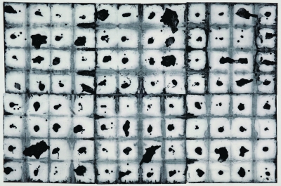 在这样一个上下文关系中,李纲的这些探索似乎就变得有些意义了。这些意义体现为他的工作是在进行一些结构语言的试验。折叠、拓印和转印作为一套技法,将外部世界的信息保留下来同时他也是一种过滤,通过并列重复将情绪化的东西去掉,提供着一种冷峻、理性的视觉观看。而这些恰恰回到了原典意义上的“抽象试验”,也是目前实验水墨中的一个空白。“抽象实验”之要义并不在于最后形成画面有没有可以辨识的图像,而在于它在平面和媒介两个方面的推进。