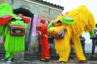 5月5日,江西省金溪县双塘镇竹桥古村村民和游客们正在欣赏非遗手摇狮表演。金溪县是千年古县,县内非物质文化遗产资源和古村落资源异常丰富。为了更好地传承和保护非物质文化遗产,该县将非遗表演与古村旅游开发巧妙结合起来,让游客们在接受古村文化熏陶的同时,乐享金溪独特的手摇狮、马步灯、矮脚龙等非遗大餐。(邓兴东 摄影报道)