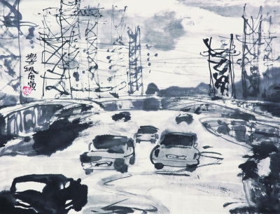 水墨都市画是当代中国山水画领域出现的以描绘都市风景为内容的新的绘画形式,蕴含了作者对都市和人生的热切关注。樊枫通过地道的文人笔墨去转换城市人文景观,尤其是城市建筑群,显现出传统笔墨的现代意味和城市风景的现代视觉文化特征。樊枫于上世纪90年代中期创作的《绿色家园》、本世纪初创作的《满庭芳》等,均沿袭着传统山水画的道路,对技巧、图式等进行探索,画面唯美,表现毗邻于城市的自然美景;随后的《欧来欧去》系列用笔墨自由地表达了欧洲城市的景观,笔触飞动灵活;其《都市味象系列》描绘自己生活于其中的城市印象,强化了个性化的面貌,画面完全充斥着铺天盖地的都市生活、城市物象,真正地进入了现代都市水墨。(高素娜)