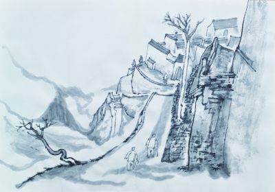 在吕梁的日子是愉快的,远离都市,呼吸着新鲜的空气,吃着可口的农家饭,回归田园生活,更接近我的本性,好不怡然自得。更重要的是放慢了脚步,能静下心来思考。在南洼的那些日子里,我每天都要写点日记,慢慢体会自己内心的变化。人需要过慢生活,好的作品也要慢慢打造。这和老乡家里蒸馒头有着异曲同工之妙,这火不能急,急了面就被蒸死了,火候不够也不行,否则蒸出来的馒头不熟。创作也需要掌握好内心的情感,情感不够,作品就缺少人情味,情感太过强烈,就不容易控制好自己的心和手。记得我在南洼写生时,天下着小雨,我打着伞画,没有风声,也没有汽车声,只有雨落在伞上的声音和笔在纸上划过的声音,一切都静极了。心静了,单纯了,也就离出好作品不远了。
