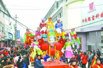 有着千年历史的湖南省级非遗平江花灯戏近年来扎根平江县城乡,深受百姓欢迎。除1个专业剧团外,平江花灯戏民间剧团发展也如雨后春笋,总数近百个,其中已登记在册的36个,还有很多民间花灯戏团体也提出了登记申请。据统计,平江县民间艺术团体每年演出花灯戏1000多场次。长寿镇花灯戏剧团团长吴志红告诉记者:“在平江县,很多婚庆、店庆这样的热闹场面都能看到花灯戏的表演,我们团一年要演上百场,淡季时每月也有十五六场演出。”