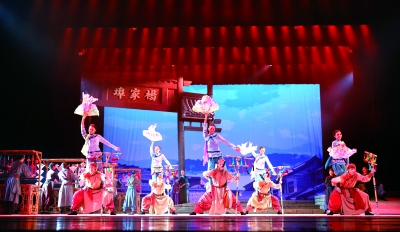 为纪念中国人民抗日战争暨世界反法西斯战争胜利70周年,7月23日晚,由山东青年政治学院舞蹈学院和山东青年艺术团共同打造的凸显山东特色、齐鲁文化的抗战题材舞剧《风筝》在山东剧院正式公演。《风筝》是一部以反对战争,祈愿和平为主题的抗战题材舞剧,采用山东三大秧歌元素作为基础舞蹈语汇,在国内的舞剧创作中尚属首例。图为演出现场。