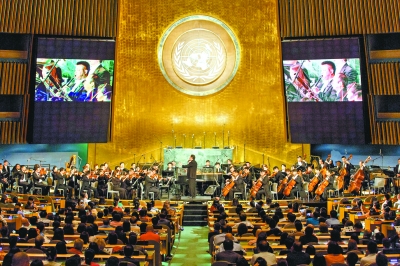 中国文化部等部门在纽约联合国总部举办的系列纪念活动受到极大关注。8月28日,由中国常驻联合国代表团和中国文化部共同主办的纪念联合国成立暨世界反法西斯战争胜利70周年音乐会在联合国大会厅举行。音乐会由上海交响乐团与来自美国、俄罗斯、英国、法国等国家的艺术家联袂演出,由中国著名指挥家余隆担任指挥,主要曲目有柴可夫斯基《如歌的行板》、约翰·威廉姆斯《辛德勒名单》、贝多芬《合唱幻想曲》等。中国著名作曲家邹野为本次音乐会创作了交响序曲。最后,音乐会在极富中国特色的《茉莉花》和观众经久不息的掌声中落下帷幕。