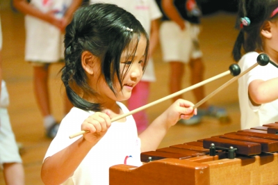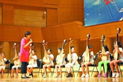如今,从2007年首次举办京剧夏令营开始,9年来中山音乐堂先后举办了无需基础的打击乐、歌唱夏令营,以及需要一定艺术基础的竖琴、铜管、琵琶夏令营。今年的竖琴夏令营早在开营前一个月名额即已报满;琵琶夏令营限额80人,应家长及孩子们的要求,又额外增加了30个名额。夏令营里有很多从全国各地赶来的孩子,“打开艺术之门”正在潜移默化地改变着孩子们的暑期生活,培养着他们对艺术的兴趣。