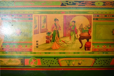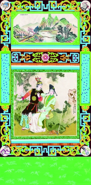 边饰图案是炕围画的特征和精华所在,对炕围画的形式和风格的形成,有着极为重要的作用。所以,评定一套炕围画的精劣高下亦多以此为标准。