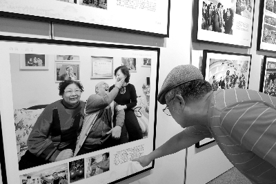 ▶ 由北京市文联、北京摄影家协会主办的庆祝中华人民共和国成立66周年“相遇·北京”摄影展览,9月18日在北京首都图书馆开展。展览包括“京尚”“京腔”“京风”“京韵”四大专题。图为展览现场。