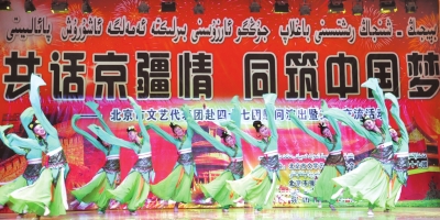 要汇集一支规模如此庞大的交流团队并不是个小工程。出发前几天,有的演员还在外省市甚至国外演出,可得到赴疆的消息后,他们主动推掉手头的工作,汇聚到了首都文艺家之家这杆大旗下。关于节目演出安排,北京市文联党组书记陈启刚表示,考虑到和维吾尔族观众语言沟通上的困难,演出增加了口技、杂技、变脸等以肢体语言展示为主的节目。此外,考虑到驻地部队和援建职工的辛苦,还加入了京剧、小品、摇滚乐等,让观众在他乡听得到北京声音。演出第一站,交流团就率先深入海拔3500多米、处于中国与吉尔吉斯斯坦接壤地的伊尔克什坦口岸和吐尔尕特口岸所在的边防哨所开展演出和笔会,向官兵表达敬意,送去欢乐。