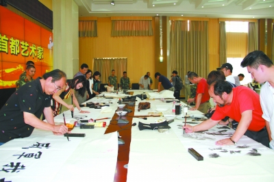 8月18日至31日,首都艺术家代表团深入到新疆库车、阿克苏、和田等地的社区、农村、学校、部队及边防哨所,倾情奉献了16场文艺演出、20场书画笔会、两场两地艺术家联欢,看望慰问了13户维吾尔族群众、先进典型和沙海老兵家庭,给20名援建工人、10名武警战士发放了电话卡,给1个连队送去了西瓜,为两个边防公安派出所赠送了电脑、打印机等。10名文艺志愿者为和田地区的500多名文化爱好者开展了250课时的摄影、民间文艺、音乐、舞蹈等艺术门类的培训。整个活动,受众近10万人,为南疆各族群众和广大官兵送去了内容丰富、形式多样的文化大餐。连续4年执着赴疆,北京市文联的文化援疆工程,实现了从单一“送文化”到既“送文化”又“种文化”的转变,达到了既丰富边疆群众文化生活又普及艺术知识的目的。