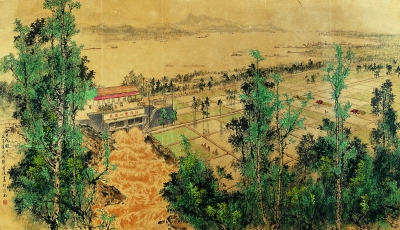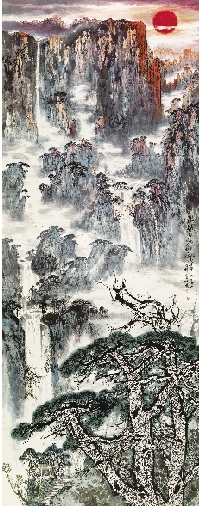 ②水赴大壑 云归暮山(国画) 500×200厘米 1975年