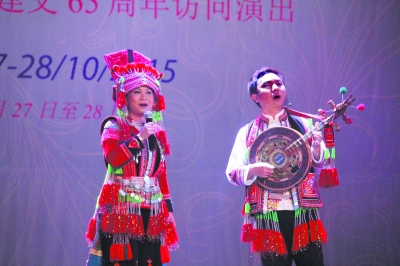 10月27日,在越南首都河内,中国云南省艺术团演员演唱彝族海菜腔《金鸟银鸟飞起来》。