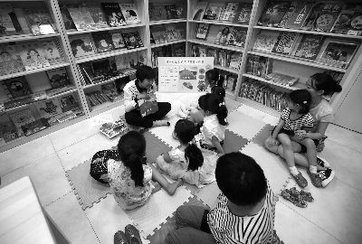 由北京协作者童缘公益组织和北京市东城区东四街道办事处共同主办的第九届“我爱社区我爱家”公益夏令营近日在北京启动。来自东四周边社区的80余名小朋友不仅参加了阅读绘本、蛋糕烘焙等活动,还参加了“带着彩色出发”真车涂鸦活动。图为孩子们参加阅读绘本活动。本报记者 卢 旭 摄